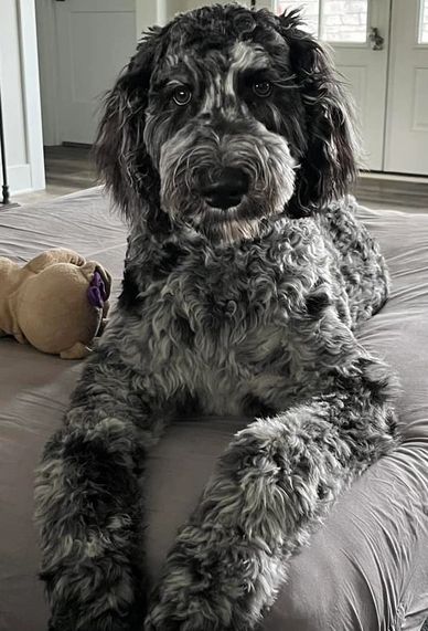 Winston just recently turned 4 years old! He came to us fully potty trained and well socialized. He is the absolute sweetest boy. We get complimented often on his look and how sweet he is. He is very smart and has been the best puppy with our kids. He is so loving, playful and gentle with our babies. He is the BEST puppy ever and we just adore him!