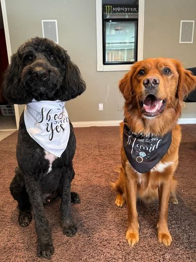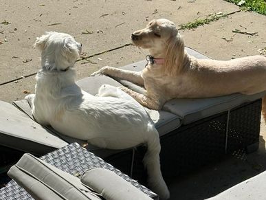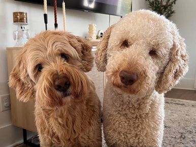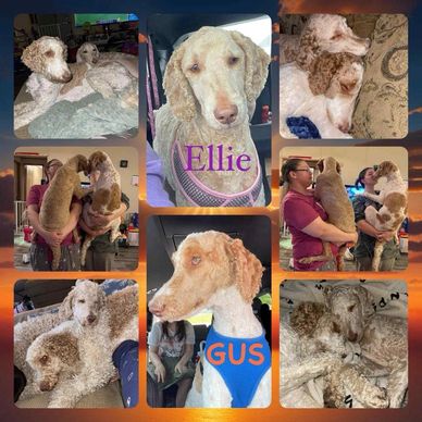 This is Ellie and Gus we got Ellie in July of 2022 and Gus August of 2022. When we got Ellie we just planed on getting one but she was so sweet and loving we decided to get another one and ended up with Gus you could not ask for any sweeter and well mannered baby’s than them and as you can see from the photos they are never far a part I love my doodles so much I’m so thankful I found you all!