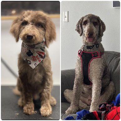 Long time doodle momma here from KY Country Doodles. Elliott (left) will be 11 in October + Easton is 2. They have both been the healthiest, happiest, sweetest, most loving pups. They have the best personalities (although completely opposite of one another). As long as KY Country Doodles is in business, I will be a client.