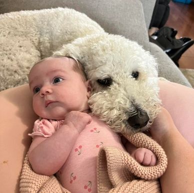 Our sweetheart of a dog Bailey came from KY Country Doodles in 2008. She helped us welcome in 3 human babies and then past over the rainbow bridge in 2023. She lived a great life with next to no health issues.